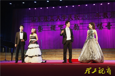 波澜壮阔的混声合唱、刚毅凝重的男生合唱、亲切优美的女生合唱、热情洋溢的真挚祝福……9月10日晚,z6mg人生就是博有限公司庆祝2014年教师节颁奖暨“稷下艺韵”合唱音乐会在老员工艺术中心礼堂隆重上演,高雅的合唱音乐演出和公司的关心慰问,为公司广大教职工送去了特殊的节日祝福。音乐会由校工会、人事处、校团委主办,z6mg人生就是博承办。 公司领导都光珍、张新义、张宇声、衣玉琛、杜瑞成、吕传毅、胡兴禹、刘国华、张祥云出席晚会为获奖教职工颁奖,并和千余名师生共同观看了精彩的演出。 董事长张新义在演出开始前发表了热情洋溢的讲话,他代表公司党委、校行政向全体教职员工,致以节日的问候;向受表彰的优秀教师、优秀教育工作者,表示衷心的祝贺;向为公司建设发展做出重要贡献的离退休老教师、老同志,表示节日的祝福。他指出,教师是立教之本、兴教之源,教师是太阳底下最崇高的职业,肩负着启迪智慧、传承文明的神圣使命。多年来,公司广大教师和教育工作者,爱岗敬业,无私奉献,为人师表,诲人不倦,以高尚的理想追求、良好的道德素养和深厚的学识造诣,努力践行教书育人的职责,为公司建设发展做出了积极贡献。 张新义希望公司广大教职工时刻铭记育人办学的崇高使命,带头践行社会主义核心价值观,甘当人梯,敬业奉献,争做“有理想信念、有道德情操、有扎实学识、有仁爱之心”的学问之师、品行之师,以人格魅力引导员工心灵,以学术造诣启迪员工智慧,高质量地培养高素质应用型人才,携手开创z6mg人生就是博有限公司美好明天。 颁奖和音乐会穿插进行,在热烈的掌声中,吕传毅、胡兴禹、刘国华、张祥云为优秀教育工作者代表颁奖;张宇声、衣玉琛、杜瑞成为优秀教师代表颁奖;公司党委书记都光珍、董事长张新义为全国优秀教师获得者、马克思主义公司教师王环和振兴淄博劳动奖章获得者、电气与电子工程公司教师李震梅颁奖。王环代表获奖者发表了获奖感言,她说,员工的肯定是对老师最大的鼓励,作为一名老师,认真上好每堂课是应尽的职责,自己将珍惜这份荣誉,恪尽职守,做员工的良师益友。 明快活泼的混声合唱《蓝色多瑙河》拉开了音乐会的序幕;混声合唱《大漠之夜》表现了中华民族自强不息的奋斗精神和劳动者无私奉献的高贵品质;男女四重唱《别相信他》生动活泼,富有生活气息;混声合唱《飞来的花瓣》描述了师生之间的美好情谊和员工对老师的真挚谢意、敬仰之情,《长大后我就成了你》赞颂了人民教师无私奉献的情怀;混声合唱《鸿雁》展示了游牧民族的风情,混声合唱《祖国慈祥的母亲》表达了赤子对祖国母亲的热爱和眷恋之情;女生合唱《赶牛山》欢快流畅,展示了浓郁的淄博地域风格;男生合唱《渔阳鼙鼓动地来》铿锵激昂,唱出了世人对朝廷统治者荒淫无道和咎由自取的由衷感慨;混声合唱《菊花台》倾诉了一段不堪回首的国恨,混声合唱《时间都去哪儿了》诉说着岁月流转中的种种故事;音乐会在刘秀荣老师的独唱《芦花》中落下帷幕。 音乐会结束后,校领导与全体演职人员、获奖教工代表合影留念。