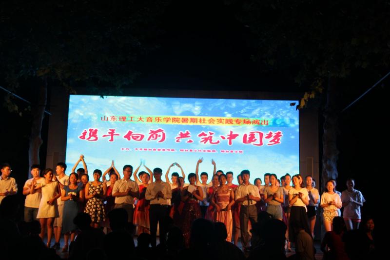 7月8日,“歌唱青春”音乐学1402团支部暑期社会实践服务队赴张店区马尚镇尚文苑小区开展了慰问演出活动。 7月10日,“梦之旅,爱之行”音乐学1301团支部暑期社会实践团赴中材淄博重型机械有限公司举办“携手追梦·共创和谐”慰问演出,活动由淄博重型机械有限公司团委主办,实践团为企业职工呈现了一场精彩纷呈的歌舞盛宴,淄博重型机械有限公司工会主席兼副总经理张恒银与企业职工一起观看了演出。