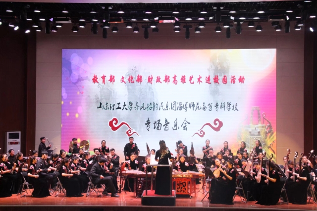 今年,公司首次成为高雅艺术进校园指定巡演高校,并承担三场演出任务,12月9日齐风韶韵民族管弦乐团还将奔赴淄博师范高等专科公司进行专场演出。