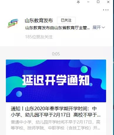 今天(1月30日)凌晨零时5分,山东省教育厅政务新媒体“山东教育发布”