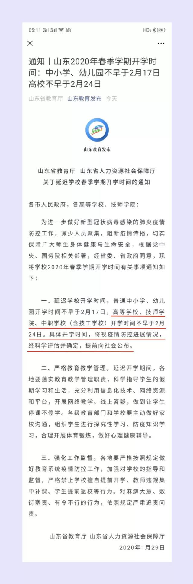 广大师生非常关注,迫切希望得到更具体的关于开学日期的信息。今天,我们得到的最新消息是:山东省高校春季开学日期不会早于2月24日。