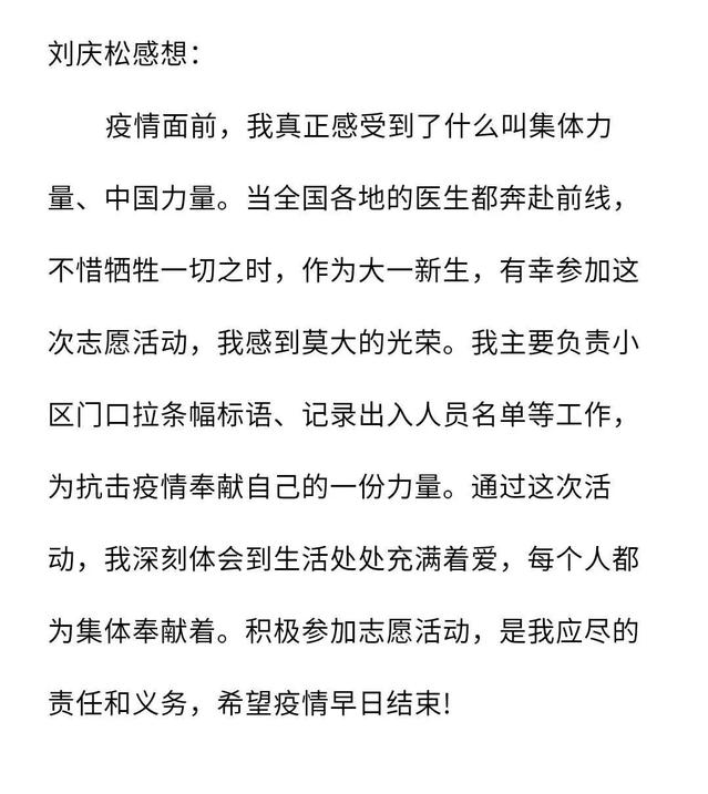 小音在此也提醒其他小伙伴,不要盲目去参加防疫活动,要听从当地政府安排。参加防疫的同学一定要做好防护和消毒,照顾好自己。没有机会去做志愿者的小伙伴,多关注官方认可的信息和文章,不要盲听盲从,居家隔离,保护好自己,不给社会添乱,也是在为抗击疫情做贡献哟。