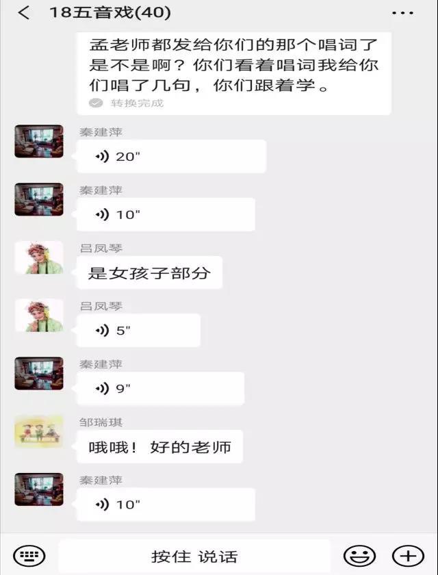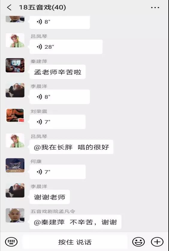 五音戏国家级传承人吕凤琴以及淄博市五音戏剧院秦建萍、孟凡令两位老师亲自授课,在学习群里以发送语音的方式一字一句的教授大家戏曲唱腔要领,听听这屏幕另一端熟悉的声音,有没有给你带来温暖的归属感呢?