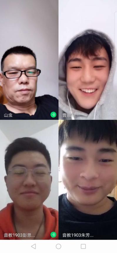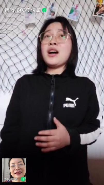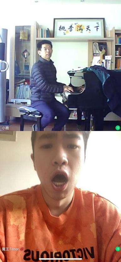 声乐课为一对一小组课,利用微信群、QQ群视频通话功能,实现师生在线双向交流,在线训练指导等教学活动。