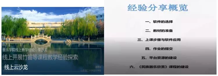 最后分享的是潘勇刚老师,以“线上开展竹笛等课程教学经验探索”为题,通过六条经验分享概览,提纲挈领,条分缕析,结合着边指导边示范的教学细节视频,给人带来耳目一新的视听盛宴。潘老师着重分享了QQ软件白板演示的功能,用线上的“白板”来代替线下的“黑板”载体,体现了教学设计的匠心独运。