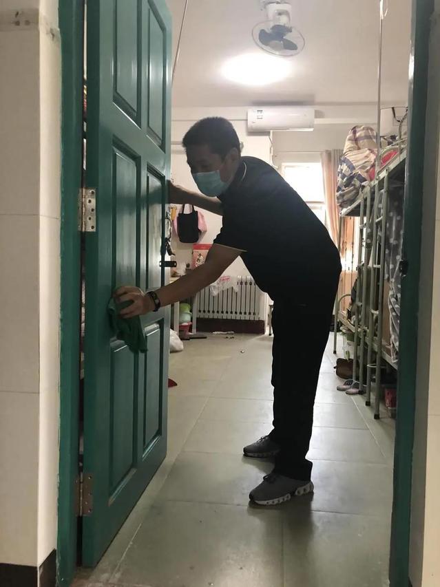 昔日员工们的良师益友,此刻撸起袖子,为毕业生们打扫地面、擦拭窗台、开窗通风、收拾垃圾、整理被褥、摆放桌椅,清扫每个角落的灰尘,进行无死角的杀菌消毒,他们分工有序,有条不紊地穿梭在各寝室间,让宿舍焕然一新,一举一动都充满着老师对员工们归来的期待。