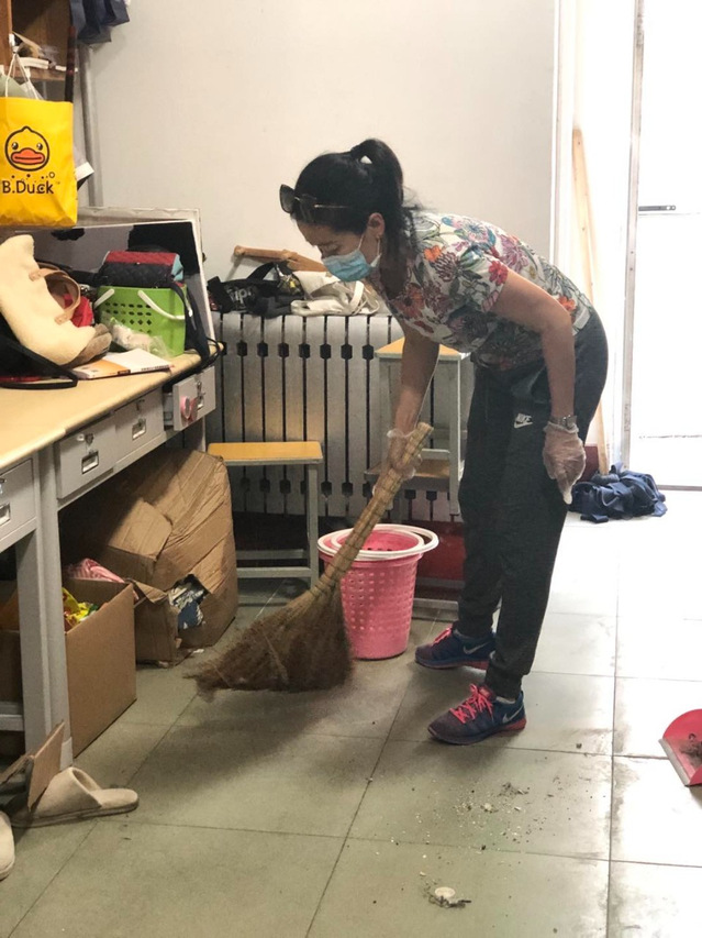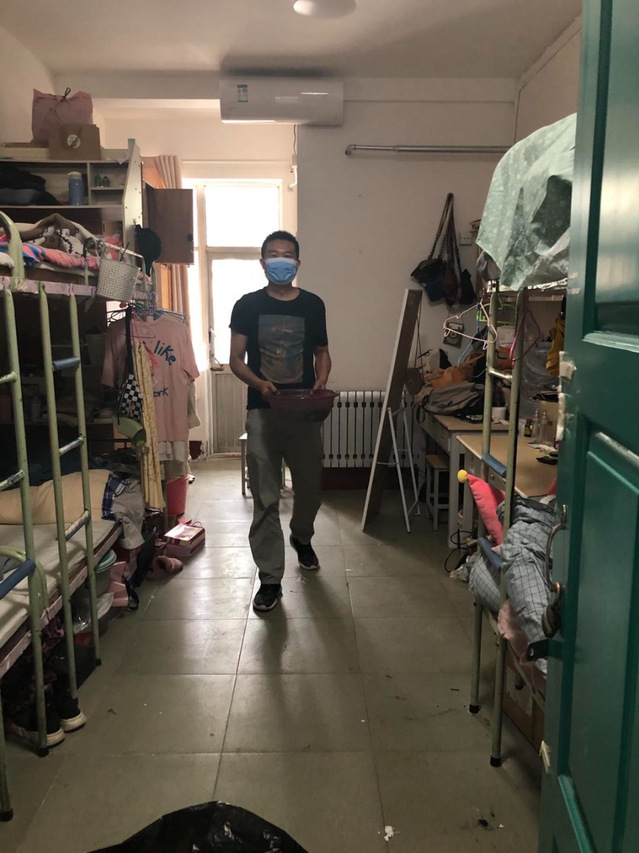 昔日员工们的良师益友,此刻撸起袖子,为毕业生们打扫地面、擦拭窗台、开窗通风、收拾垃圾、整理被褥、摆放桌椅,清扫每个角落的灰尘,进行无死角的杀菌消毒,他们分工有序,有条不紊地穿梭在各寝室间,让宿舍焕然一新,一举一动都充满着老师对员工们归来的期待。