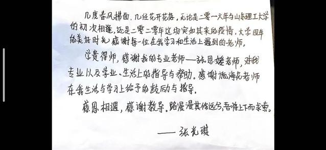 天涯地角有穷时,只有“师恩”无尽处。一支粉笔,写不尽浓浓师生情。三尺讲台,盛不下深深育人心。忘不了与山理一起走过的春夏秋冬,但让我们最难以忘怀的,还是可爱的老师们,以及他们可亲的笑脸和可敬的品格。