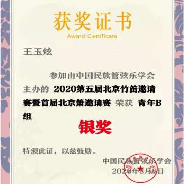 “2020第五届北京竹笛邀请赛”是中国竹笛界规格最高、最权威的赛事之一,由中国民族管弦乐学会主办、中国民族管弦乐学会竹笛专业委员会承办,每两年举办一次。此次大赛各组别评委阵容空前,分别由各大音乐艺术院校、国家文艺团体教授,国家一级演奏员等组成,由中国民族管弦乐学会吴玉霞会长亲任监审主任,中国民族管弦乐学会竹笛专业委员会会长张维良教授任评审会主任。