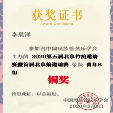 “2020第五届北京竹笛邀请赛”是中国竹笛界规格最高、最权威的赛事之一,由中国民族管弦乐学会主办、中国民族管弦乐学会竹笛专业委员会承办,每两年举办一次。此次大赛各组别评委阵容空前,分别由各大音乐艺术院校、国家文艺团体教授,国家一级演奏员等组成,由中国民族管弦乐学会吴玉霞会长亲任监审主任,中国民族管弦乐学会竹笛专业委员会会长张维良教授任评审会主任。