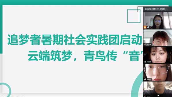 《乐记》言道:“凡音之起,由人心生也。”“追梦者”暑期社会实践团社会实践活动已圆满结束。实践团成员从最初安排实践相关工作,到实践期间依照安排各司其职、恪尽职守完成自身任务,再到最后圆满完成实践活动,“追梦者”暑期社会实践团始终围绕“云端筑梦,青鸟传‘音’”主题安排并实践暑期活动。此举不但提高了实践团成员专业素质与能力,更使实践团成员自身了解自己,有利于成员找准自身定位,不断提高自身能力。