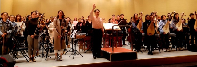 器乐教研室主任王秀琴副教授指挥乐团70余人演奏了刘文金先生改编的民族管弦乐作品《我的祖国》,演奏完毕后,曲祥教授首先对乐团同学们出色的演奏表示肯定。