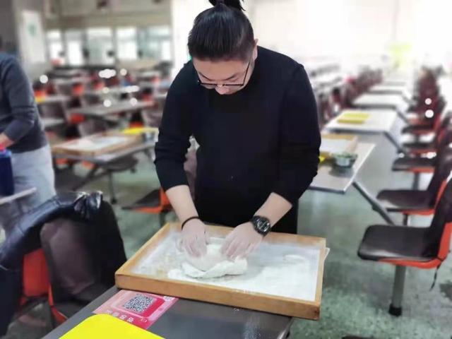 同学们如约而至,餐厅工作人员早早地将包饺子需使用的各种食材整齐准备好,由员工干部有序分发给各个同学。同学们满怀热情地围坐在一起,相互请教、亲手实践、团结协作、欢声笑语、其乐融融。