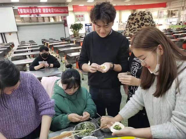12月21日,公司师生在第二餐厅二楼举办了冬至包饺子活动。公司党总支副书记李华伟,辅导员施海花、李俊潼,班级导师刘婷婷、丁泉杰、李春晓与同学们一起参与此次包饺子活动,在这严寒冬日,共同体会包饺子的乐趣。