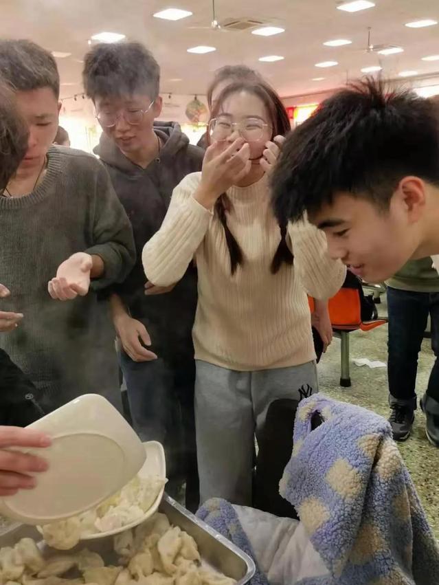 伴随着食堂水烧开的声音,热气腾腾的饺子在大家的期待中被端上了餐桌,一盘盘各式各样的饺子展现在大家面前。老师同学们一拥而上,吃上了自己动手包的饺子,一同感受着此次活动带给大家的快乐与温暖,场面十分温馨。
