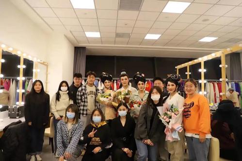 演出过后,部分员工代表前往后台,与参演人员进行了与五音戏相关的交流与合影留念,他们通过交流了解到,此次演出的重要目的之一,是支持五音戏在高校的积极推广与良好传承。