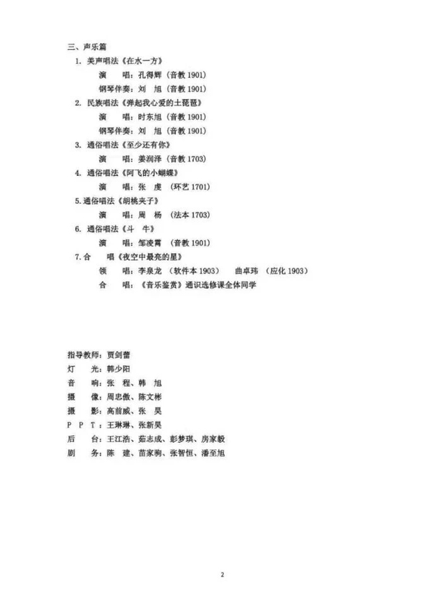 贾老师邀请选修《音乐鉴赏》通识课的同学,以及来自全校具有才艺的部分同学呈现出一场丰富精彩的音乐会。公司丁泉杰老师也带来了两段《舞蹈鉴赏》通识课的舞蹈作品友情出演。音乐会的师生观众来自全校各个公司,现场座无虚席、激情弥漫。
