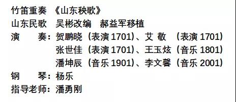 开场以竹笛重奏《山东秧歌》拉开音乐会的序幕。欢快的节奏、优美的旋律,描绘出了山东胶东地区人民载歌载舞的欢快场景。六支竹笛的配合演奏,钢琴的烘托,各个声部的灵活交替,更符合“扭秧歌”这种民俗活动热闹欢腾的艺术形象。
