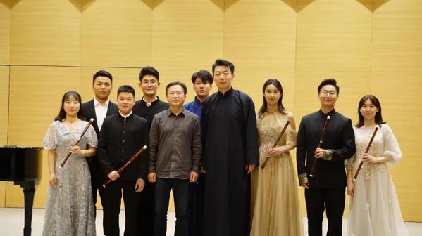 音乐会最后潘勇刚老师与弟子们共同演奏了笛子经典名曲《牧民新歌》。潘勇刚老师求学期间的恩师——山东艺术公司郝益军教授,也上台表达了聆听音乐会后的感想,对教师职业的责任感、对员工艺术实践的重要性,以及对潘勇刚老师及弟子们未来的期望。中国竹笛的艺术魅力无可比拟,优秀的传统作品风格多样绚丽多姿。致敬传统,才能令我们可以更好的展望未来,创造现代。同时要特别推动青年演奏人才的艺术发展,多给他们创造机会,打造不同的表演舞台,让他们可以更快、更优秀地成长,传承笛艺。