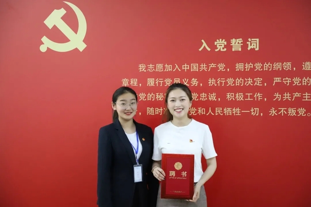 公司新一届员工会主席团见面会上,新一届执行主席王琳琳为院员工会秘书长李俊潼颁发聘书。