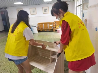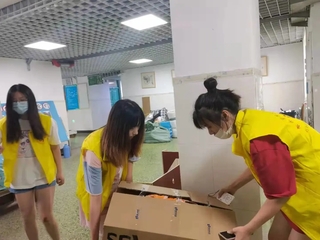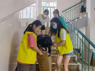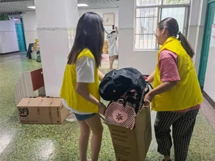 在志愿队的帮助下,一袋袋行李相继打包、搬运至楼下。天气炎热,大家脸上满是汗水,纵然湿了衣衫,却没有一个人喊累,更没有停下脚步。紧握推车的双手,是志愿者们甘于奉献的写照;身着马甲的背影,是志愿者们贡献自我的象征。