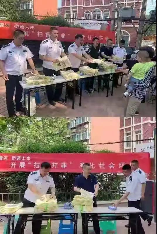 7月25日,实践团与济南市天桥区派出所一同参加毕家洼社区扫黄打非活动。