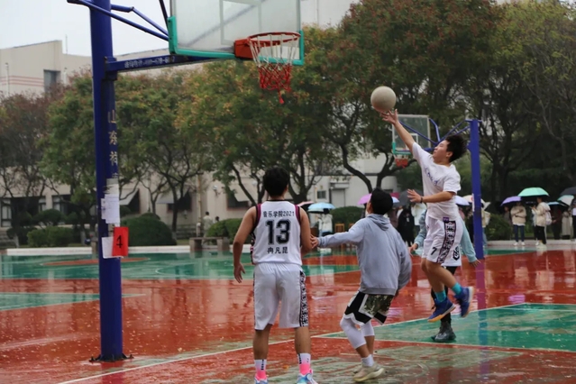 伴着一声声欢呼,19级与21级的运动健儿们齐齐登场,蓄势待发,第一回合的比赛正式开始。篮球在空中划出一道道活力四射的弧线,运动健儿们在球场上满腔热血,观众亦是热情高涨!场上的气氛逐渐激烈,阴雨天气依旧阻挡不了队员们的热情。比赛结束,19级代表队获胜。