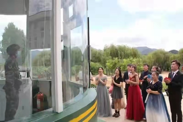 进军营,学党史,赓续红色基因。在公司党总支书记、经理王光坊,党总支副书记李华伟及辅导员王健、李俊潼的带领下,“红色回溯,寻根逐梦”暑期社会实践团赴淄博各部队参观学习、开展慰问演出。从驻扎深山的武警中队,到蛰居腹地的“空天卫士”;从艰苦偏远的哨所,到战斗在一线的营连班排……连日来,淄博市退役军人事务局、淄博军分区政治工作处联合公司实践团队组成文艺轻骑分队,怀着战友间最真挚的浓浓情谊,顶着烈日炎炎,跨林海、翻高山,深入到驻淄部队一线官兵中间进行慰问演出,丰富和活跃了基层部队的军营文化生活,凝聚起推进强军实践的正能量。