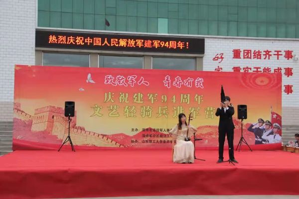 伴随着激动人心的音乐,“致敬军人·青春有我”庆祝建军94周年文艺轻骑兵进军营文艺慰问演出拉开了序幕。“红色回溯,寻根逐梦”暑期社会实践团精心准备的节目精彩纷呈、好戏连台,既有深情歌颂祖国的歌曲《我爱你,中国》,又有慷慨激昂的个人笙独奏《南海渔歌》,也有代表民族精魂的舞蹈《抬龙王》等等,演出气氛庄重、和谐、温馨,真正展现了军爱民、民拥军,军民团结一家亲的深厚友谊。演出在全体官兵和演员们大合唱《强军战歌》当中落下帷幕。演出现场气氛热烈、欢声雷动,公司实践团大气优雅的音乐、精湛到位的表演赢得了在场官兵的高度赞誉。