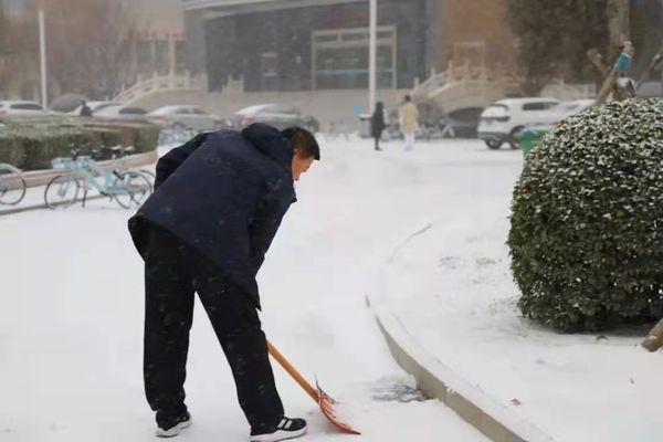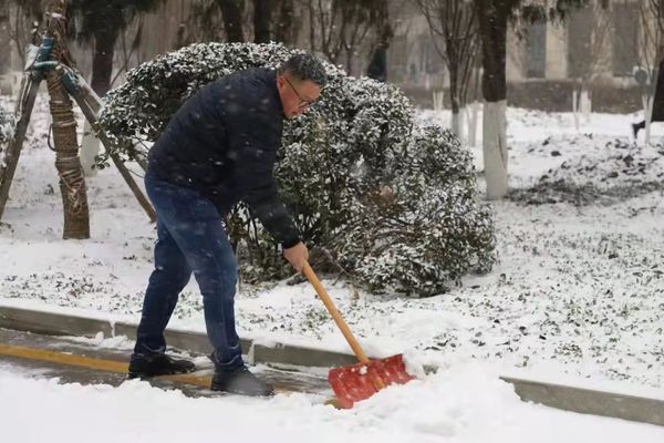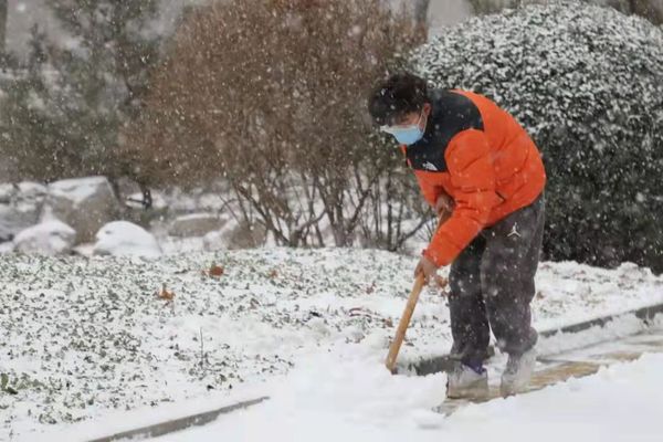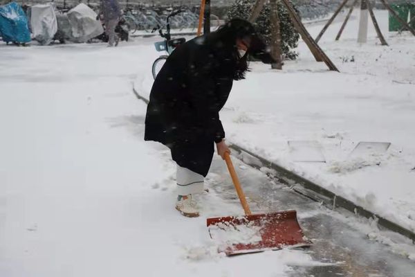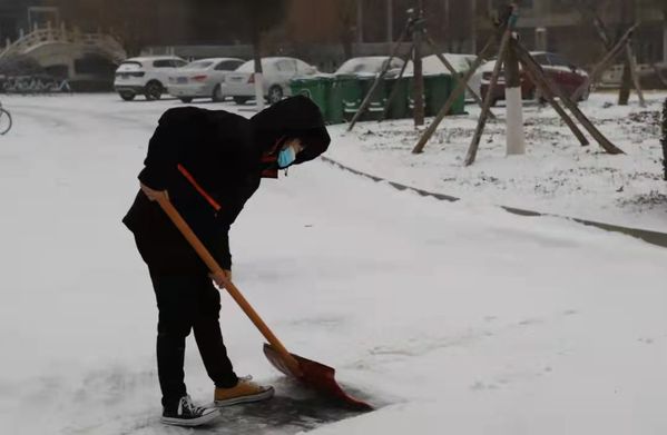 风雪虽大,敌不过众志成城。志愿者们热情高涨,“叮叮咔咔”的铲雪声与师生忙碌的背影成为雪中的靓丽风景,即使是凛冽的寒风也丝毫没有影响他们的劳动热情和效率。
