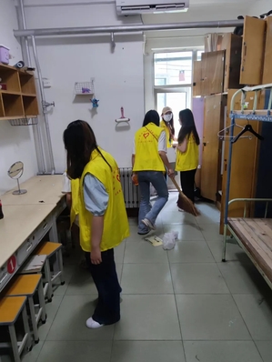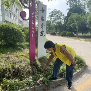 为进一步深入新时代文明实践志愿服务工作,权益部的工作人员及志愿者共同清理校内的卫生死角。