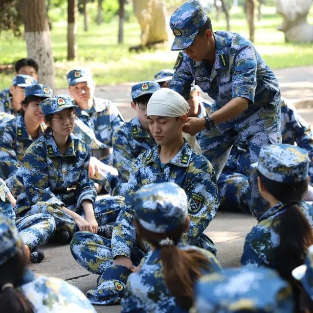 为了让员工了解并掌握应急救护基本知识和技能,提高自救互救能力,军训期间开展了包扎急救知识训练。