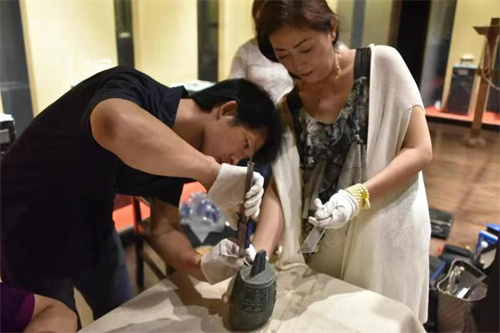让文物说话,让文物发声。研究中心组织专家团队从考古学、史学、音乐学、美学等多方入手,对临淄“商王墓”村出土的编钟、编磬进行测音考察和论证。在特聘专家周纯一教授的带领指导下,对韶乐本源研究、梳理、复现,已初步形成规模。