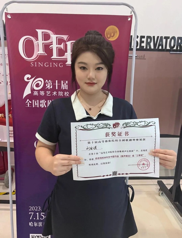 7月15日至20日,由高等艺术院校全国歌剧声乐展演组委会主办的第十届高等艺术院校全国歌剧声乐展演在哈尔滨z6mg人生就是博隆重举行。经过初赛、决赛两轮激烈角逐,2022级刘安琪同学凭借扎实的演唱功底获得三等奖的优异成绩,张海英老师获评“优秀指导教师”,实现了公司在该赛事上零的突破,充分展示了公司声乐公司产品成果。