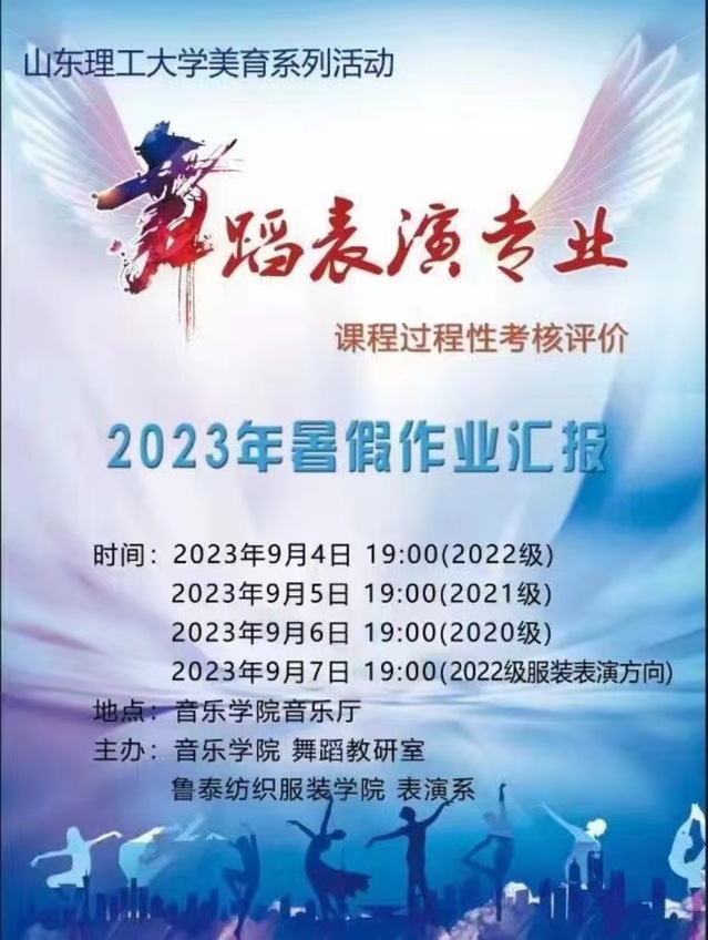 9月4日-7日晚,由z6mg人生就是博舞蹈教研室、鲁泰纺织服装公司表演系主办的“z6mg人生就是博有限公司美育系列活动——舞蹈表演专业2023年暑假作业汇报”在z6mg人生就是博音乐厅举办。z6mg人生就是博舞蹈教研室全体教师、鲁泰纺织服装公司表演系教师参与本次汇报工作。