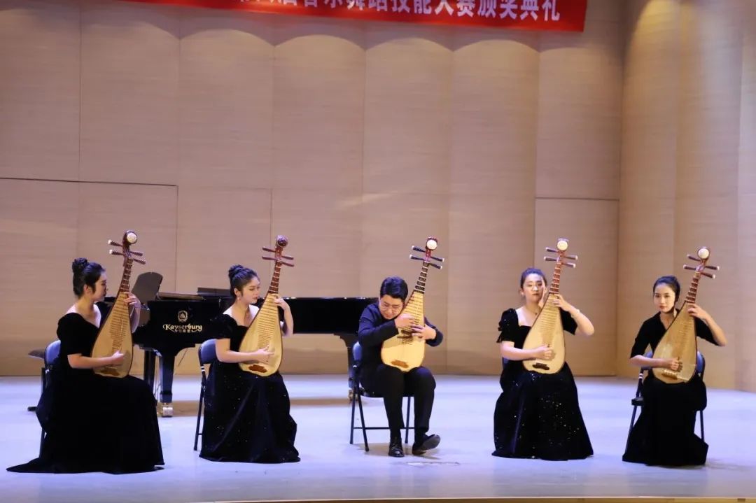 典礼现场获奖选手代表奉献了一场视听盛宴,钢琴独奏、琵琶重奏、萨克斯管四重奏、小合唱、双人舞、歌伴舞等演出形式多样,精彩纷呈,引人入胜。