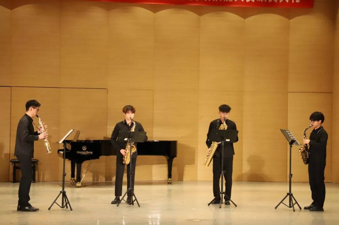 典礼现场获奖选手代表奉献了一场视听盛宴,钢琴独奏、琵琶重奏、萨克斯管四重奏、小合唱、双人舞、歌伴舞等演出形式多样,精彩纷呈,引人入胜。