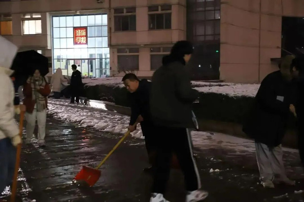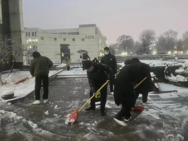 寒冬来临,公司周围积雪甚多。为创建一个安全、整洁的校园环境,12月14日17:00,在党委副书记李华伟、员工党支部书记刘洁带领下,公司党员志愿者积极参与扫雪活动当中。