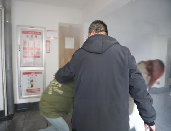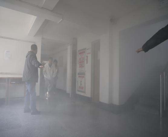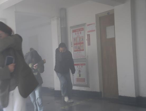 浓烟燃起,演习开始。员工在老师的指导下有序、迅速疏散,按预定路线逃生。老师在楼层教室就近楼梯口处进行现场指挥,同学们捂住口鼻,有序快速疏散到安全区域。在整个演练过程中表现出色,展现公司师生良好的纪律性与团队协作能力。