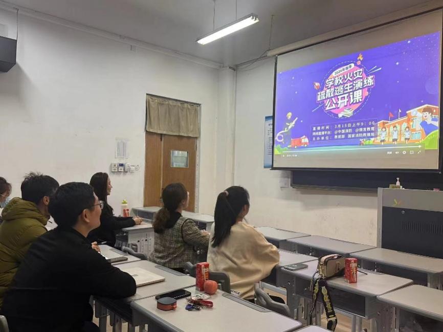 接着,各教研室组织老师集中收看国家消防救援局、教育部联合举办2024年春季公司火灾疏散逃生演练公开课视频,提升消防安全意识。