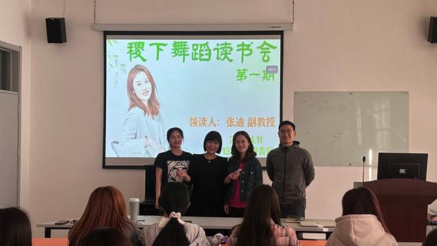 读书会采用师生共享的学习交流模式,舞蹈教研室主任张迪作为领读人每一期将带领两位同学分享学习书目,通过PPT讲述、讨论交流、角色扮演等方式来进行专业知识的扩展与深化。