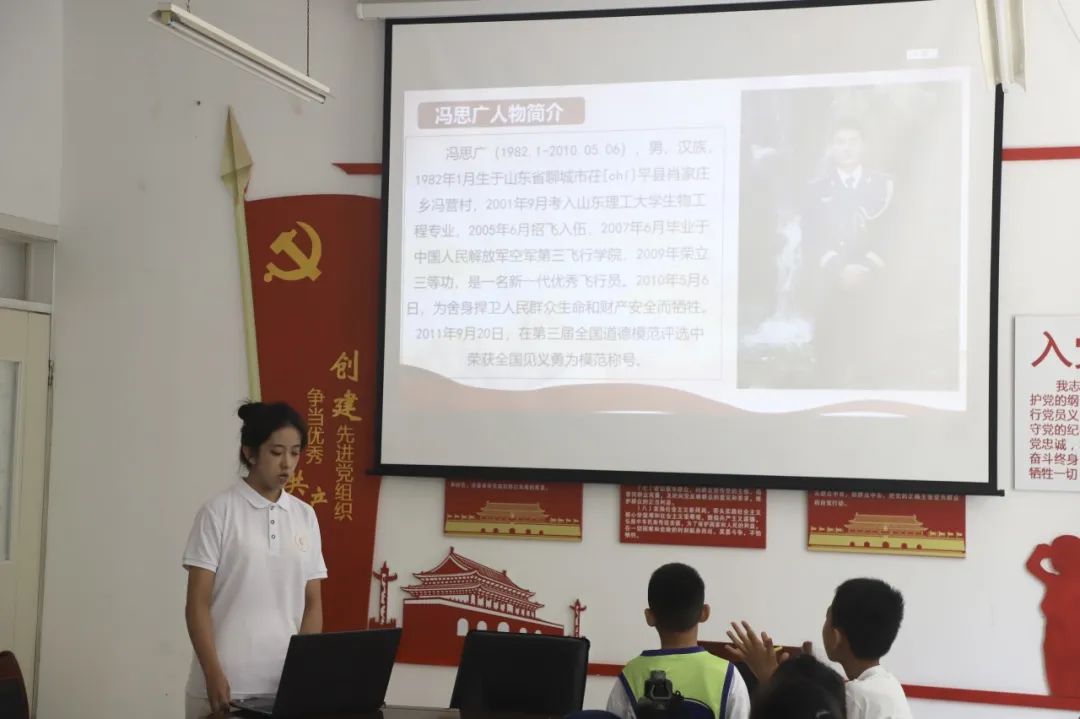 为弘扬中华民族精神,培养小朋友们心有大我,无私奉献精神,讲述冯思广烈士先进事迹,让祖国的花朵浸润红色文化,传承红色基因。7月19日,公司“艺路向前”实践团赴肥城市盛源社区新时代文明实践站学堂讲述山理工故事。