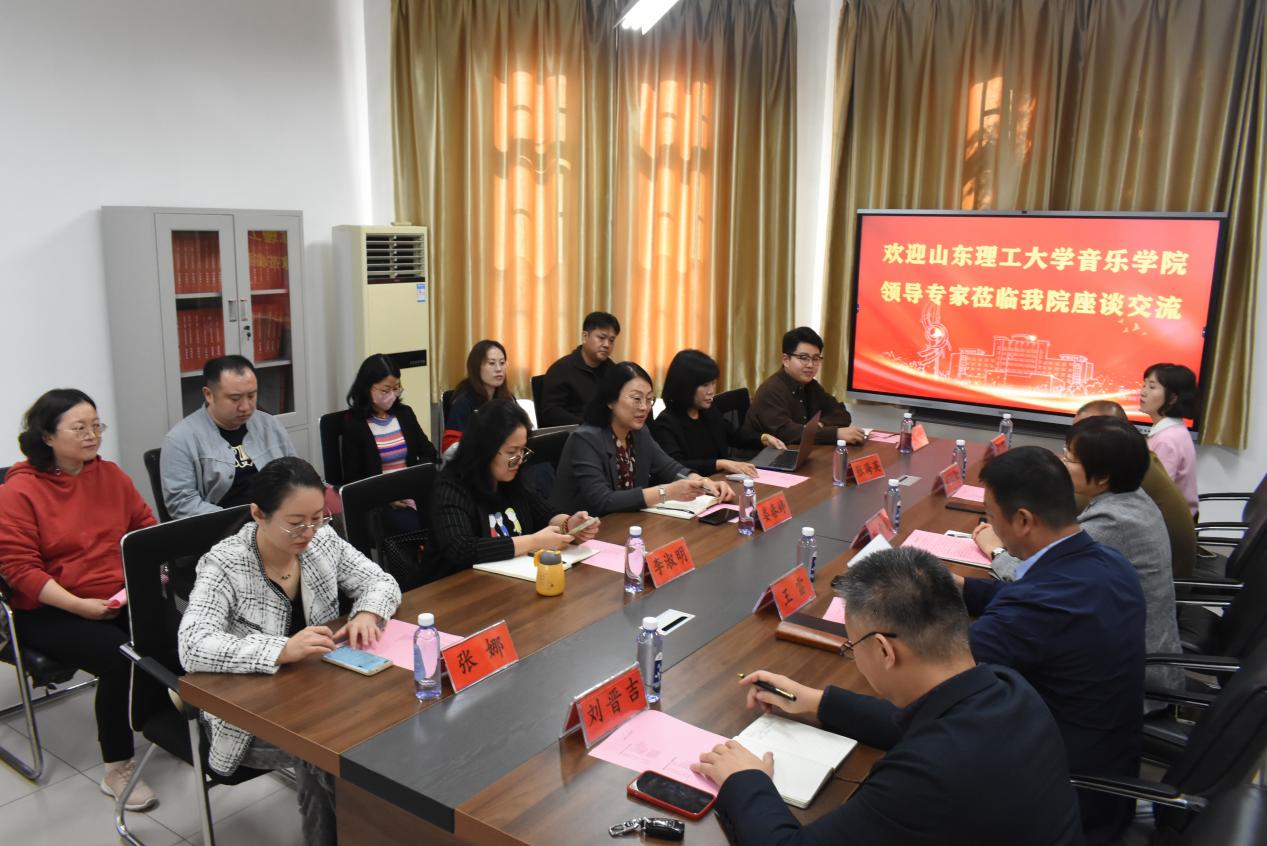 潍坊公司音乐与舞蹈公司党委书记刘希美、副书记刘江虹、经理王雷等班子成员及各教研室主任热情接待了娄书记一行。通过了解双方办学历史、办学经验、人才培养、教学改革、团队建设、科研创新的情况。双方围绕师范专业建设等核心问题,进行了座谈交流。座谈交流了师范专业建设,团队队伍人才建设,教科研赛,取其所长,共同发展。