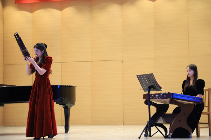 音乐会由青年竹笛演奏家石磊所创作的《红高粱叙事曲》开场。音乐2301班毛久润的吹奏将九儿性格的中倔强且敢爱敢恨的人物形象用音乐展示得淋漓尽致,同时向我们展现出红高粱般极具旺盛的生命力。