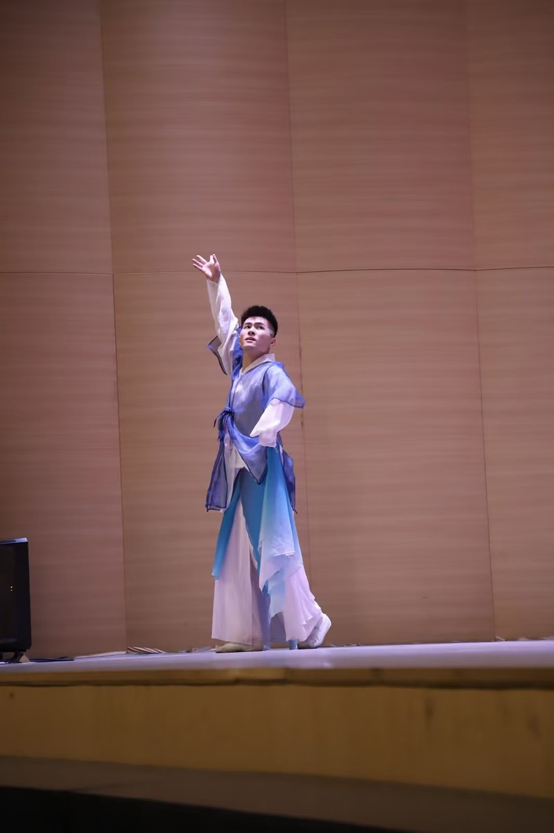 孙娜通过舞蹈《技巧组合》以高超的技艺和优美的舞姿拉开了整场演出的序幕,赢得了观众的阵阵掌声。紧接着,边宇琦带来的舞蹈《子夜歌》抒发女子的相思及爱慕之情。她以灵动的舞步深情演绎对爱情的忠贞不渝,让观众仿佛置身于诗意的世界之中。