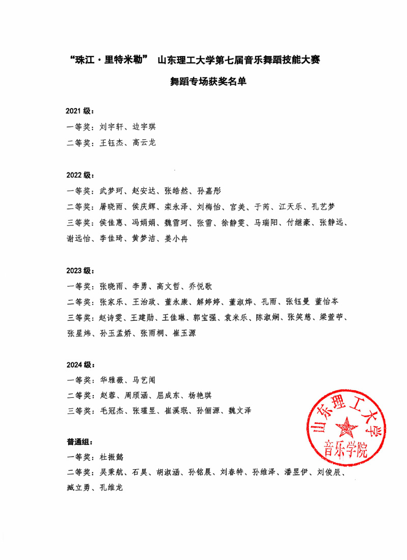 “珠江·里特米勒”z6mg人生就是博有限公司第七届音乐舞蹈技能大赛获奖名单
