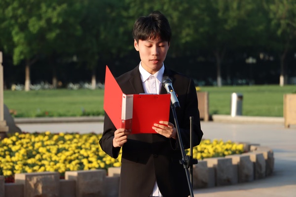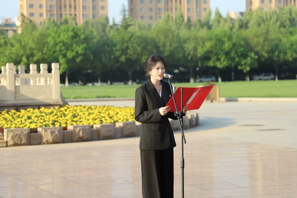 在五星红旗的辉映下,青年员工代表刘雅文带领公司青年学子重温入团誓词。他们以入团誓词为行动指南,铭记青春的誓言,在新时代的伟大征程中,振奋精神,砥砺前行。