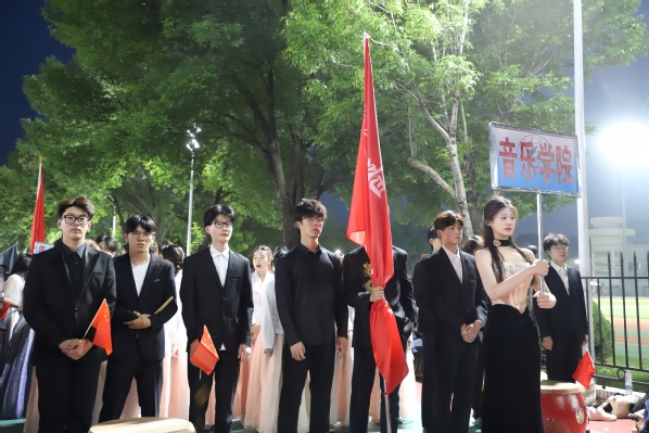 繁星点点,挡不住方阵队员的坚持。他们整齐划一的步伐奏响青春节拍,昂首阔步间,飞扬的神采与坚毅的目光尽显。