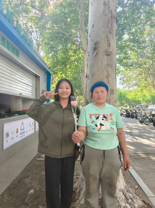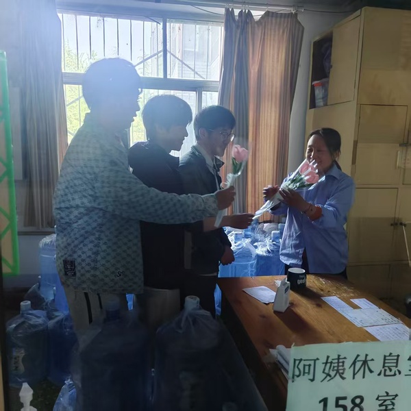 母亲节当天,同学们手捧花束,穿梭于校园的各个角落,寻找辛勤工作的食堂阿姨、保洁阿姨、宿管阿姨等母亲工作者。当阿姨们收到这份特别的礼物时,脸上都绽放出惊喜与感动的笑容。一位宿管阿姨激动地说:“第一次收到同学们亲手做的礼物,心里特别温暖,感觉自己的付出得到了认可,谢谢同学们!”同学们则纷纷表达:“这些阿姨平时在校园里像妈妈一样照顾我们,在母亲节这个特殊的日子里,希望她们也能感受到节日的快乐。”