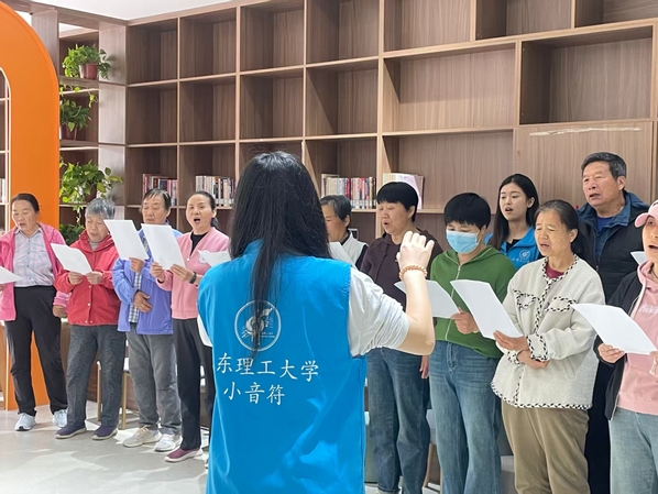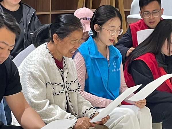 活动开始,小音符们热情地与老人们互动,拉近彼此的距离。教唱过程中,小音符耐心地一句句示范,从发声方法到情感表达,都悉心指导。老人们也积极配合,尽管有些发音不够准确,节奏把握不够精准,但他们专注认真的模样让人动容。